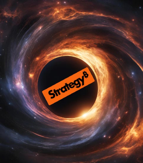 But continued debanking is only part of the story, and it isn’t the most important part. The broader point is that JPM appears to be reinforcing its anti-crypto posture as MSCI Inc. announced that it’s exploring the possibility of delisting “Bitcoin Treasury Companies” from its major indices. MSCI’s report describes companies that hold > 50% of their balance sheet in Bitcoin or other cryptocurrencies as “investment funds” and don’t consider them to be “operating businesses”. They claim that as such, the companies are not eligible to be listed on MSCI’s indices. Published reports of the news necessarily reference Strategy Inc., Michael Saylor’s unapologetically structured supermassive black hole that seeks to suck 1,000,000 bitcoins into its gravity well.